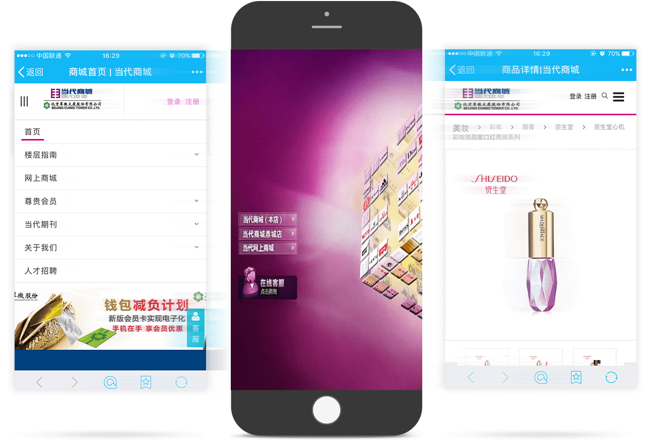 網站主視覺采用交互技術,有效傳達當代商城整體品牌形象。
