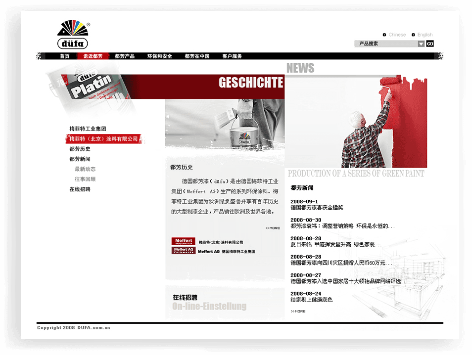 中文官網(wǎng)秉承都芳漆的品質(zhì)和理念,力求做到簡潔、明快。整體設計風格與集團網(wǎng)站相呼應,同時尊重中國大眾審