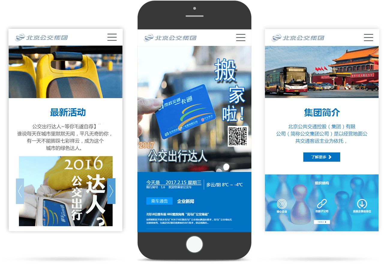 ?由新鴻儒主導設計的北京公交集團官網以更加明快、輕松的風格亮相,配合北京公交集團的“智慧親民”全新戰略。
