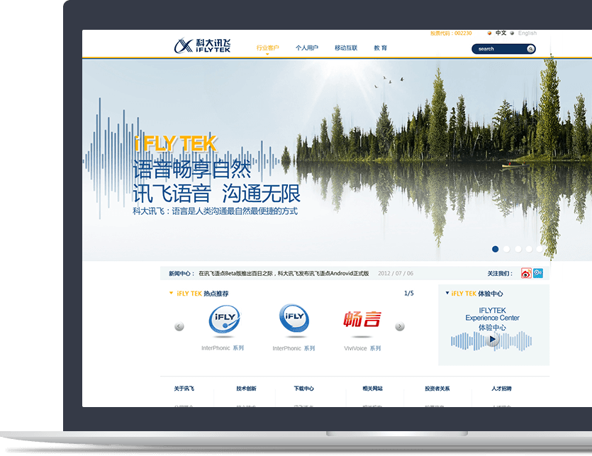 科大訊飛整體頁面簡潔、信息高效,互動性效果強!