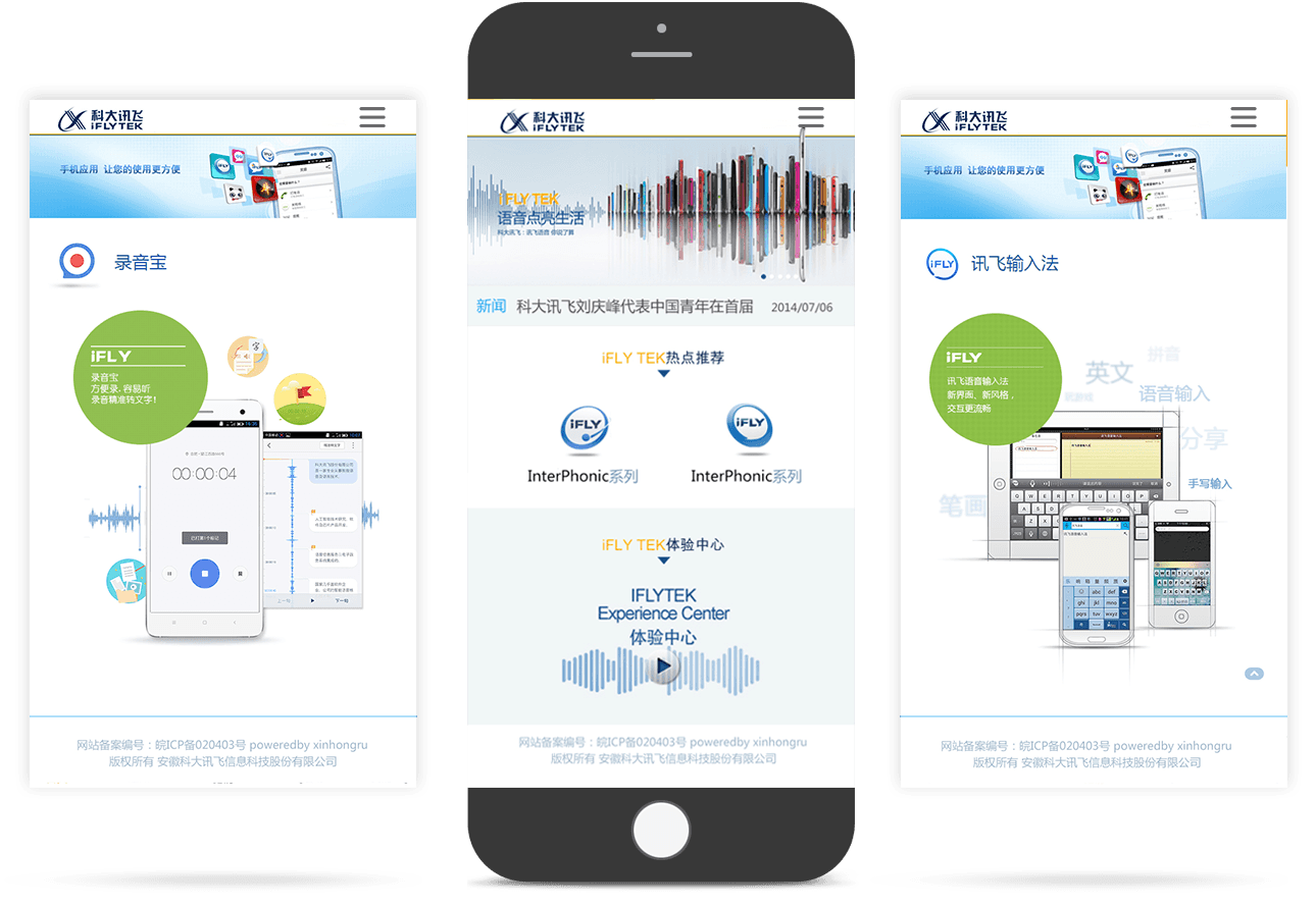 網站以藍色為主要色調,以“語音引擎-教育產品-手機應用-互動音樂-行業應用-關于訊飛”為主要欄目導航,