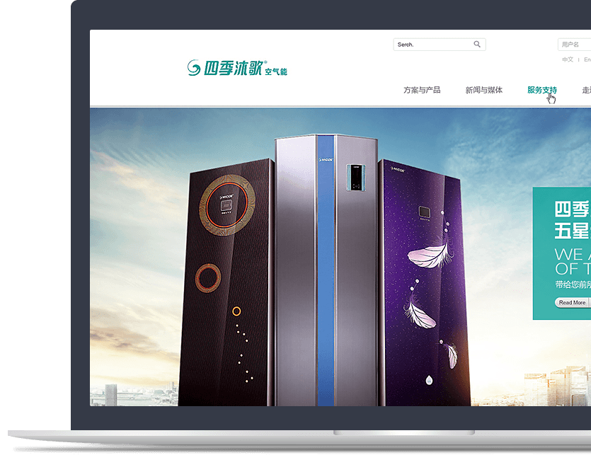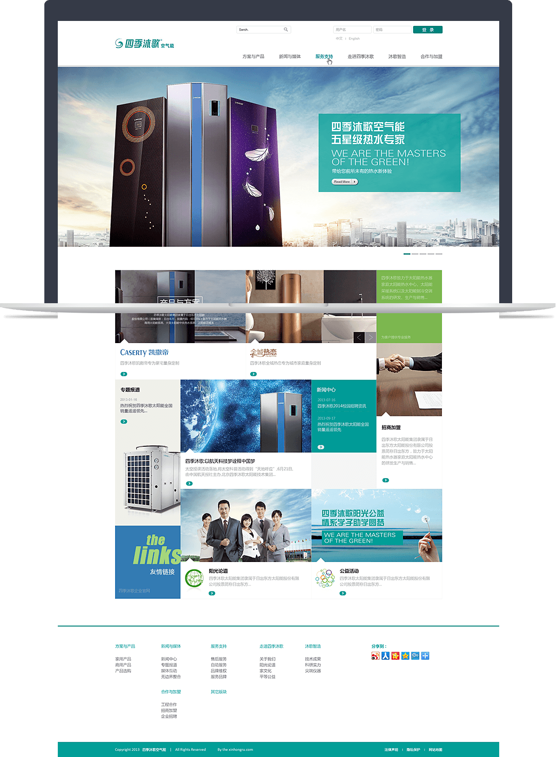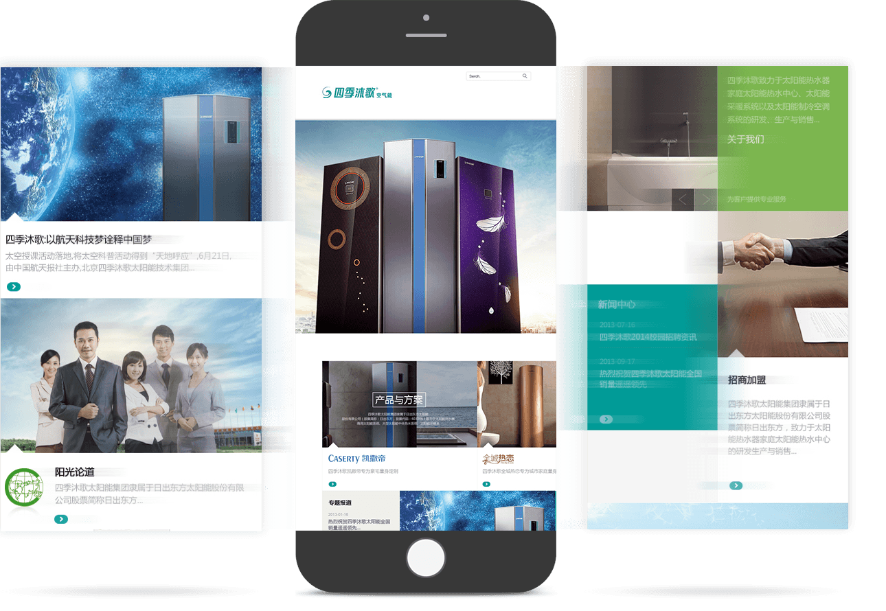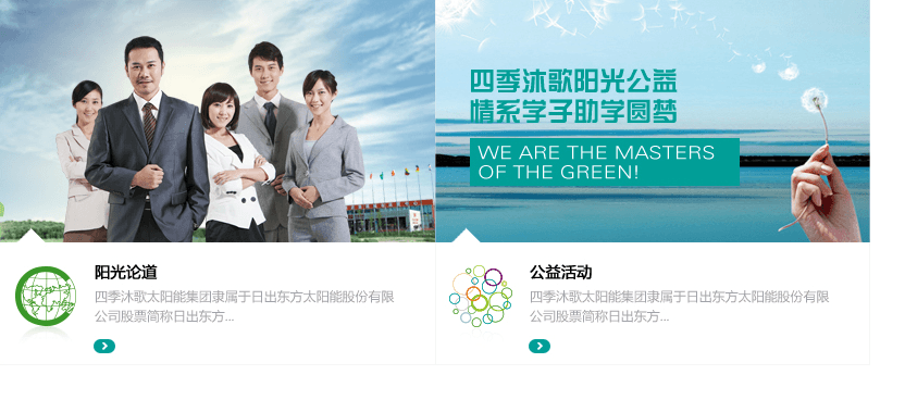 官網著力表現四季沐歌綠色能源產業的蓬勃朝氣和社會責任,呈現出科技感、現代感