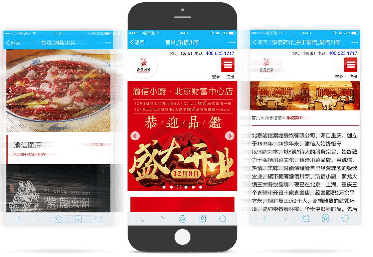 渝信川菜官網整合各地分店信息與數據,實現店面的統一化管理,具體包括門店查詢、座位預訂、會員互動等服務功能,全面提升用戶體驗。