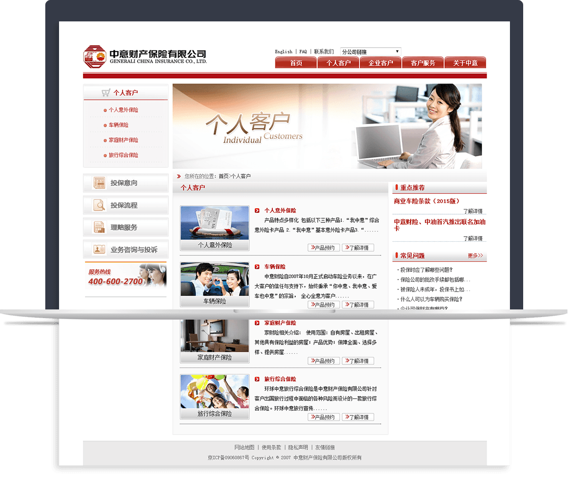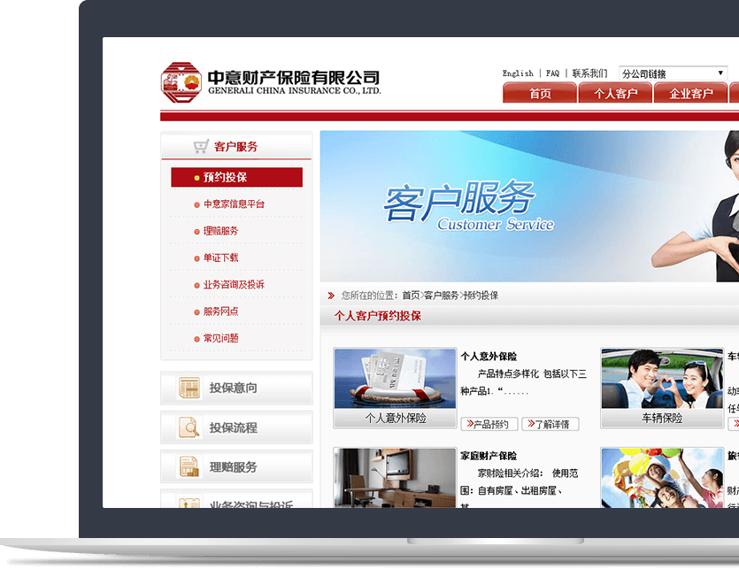 網站設置客戶服務專區,支持客戶下載文件、查找網點、在線提問,同時根據用戶需求,詳細介紹保險產品,引導客戶進行咨詢和購買。