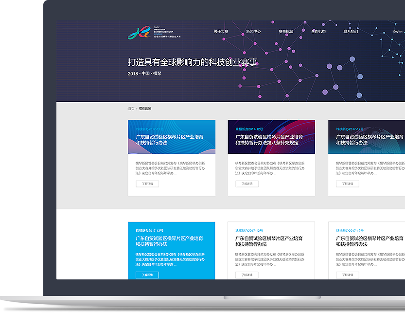 新鴻儒長期負責其網站的維護和運營推廣工作,保障網站穩定、有效運行。 協助橫琴大賽打造具有全球影響力的科技創業賽事。