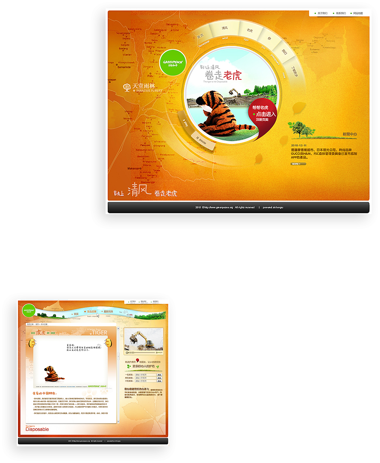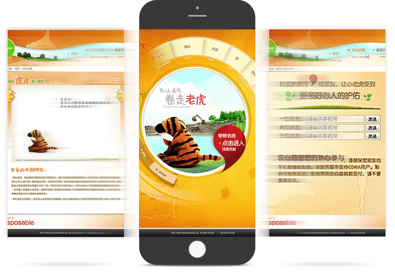新鴻儒從世界綠色和平組織的宗旨出發,以輕松、活潑、充滿人文性以及自然色彩的官方網 站助力綠色和平組織的公益活動宣傳。