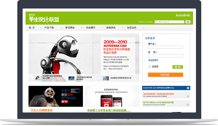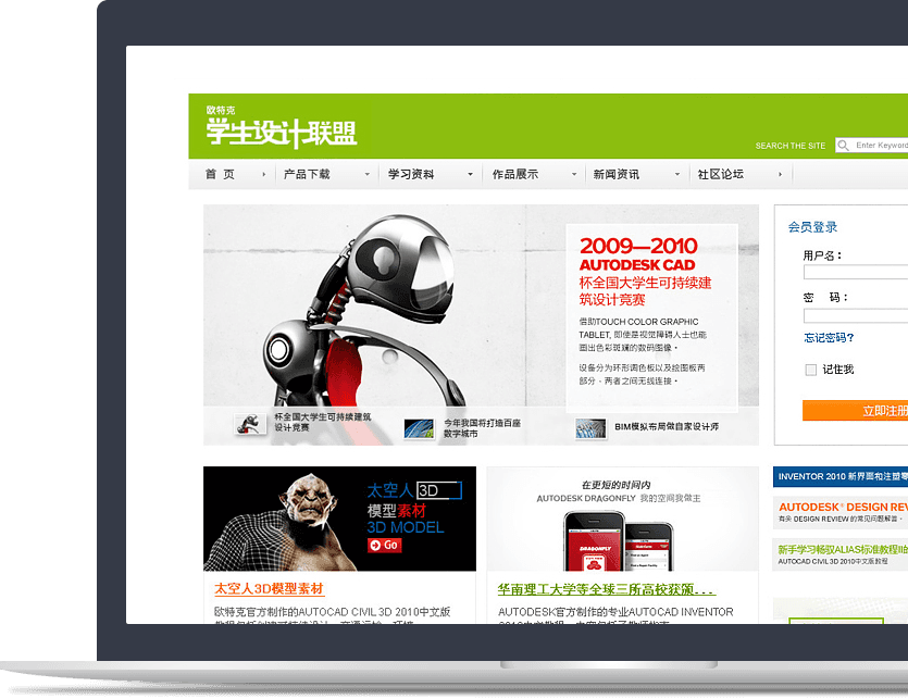 新鴻儒打造歐特克學生設計聯盟社區平臺,實現在線溝通、互動評論、在線課程、產品下載、 作品展示等功能,成為學生喜愛的技術社區平臺。
