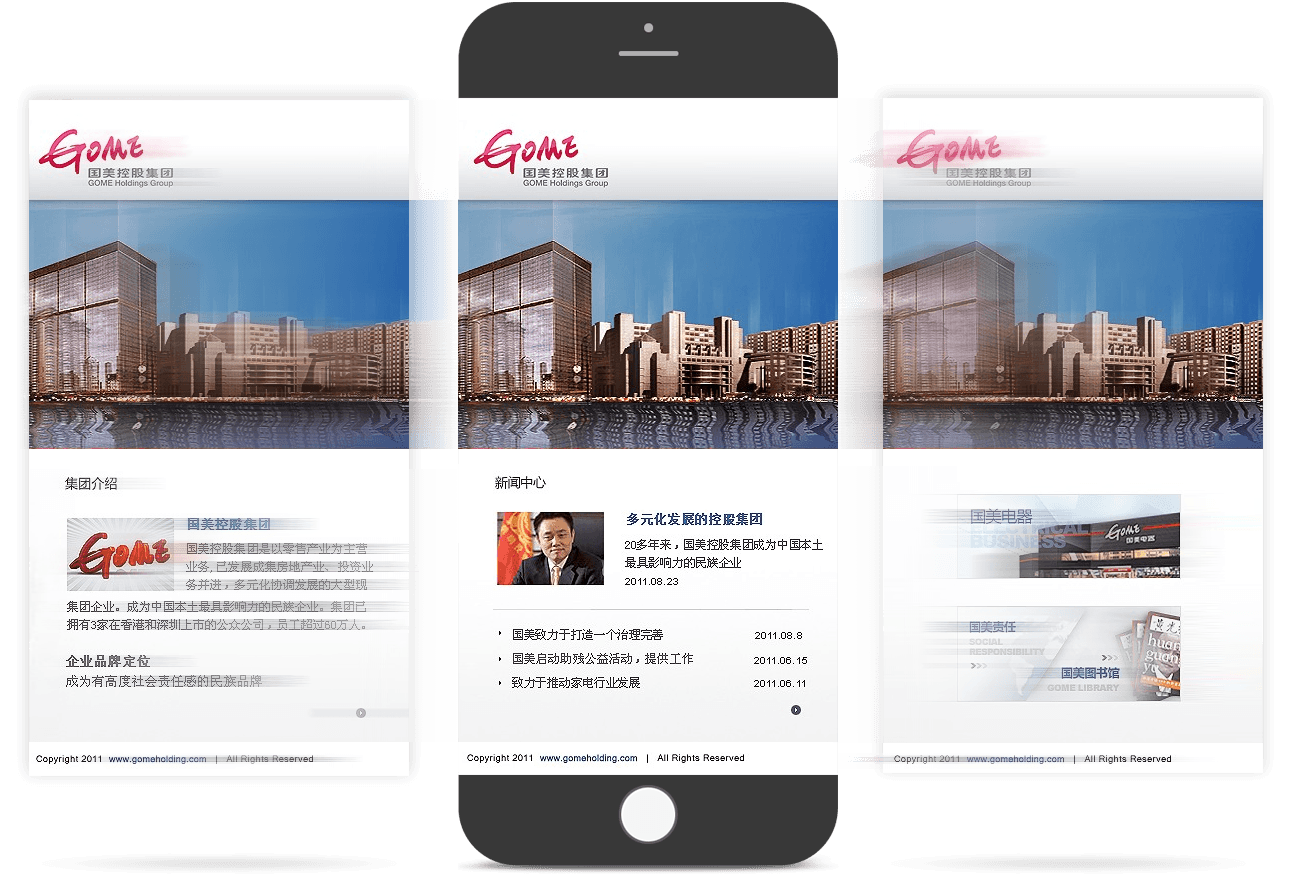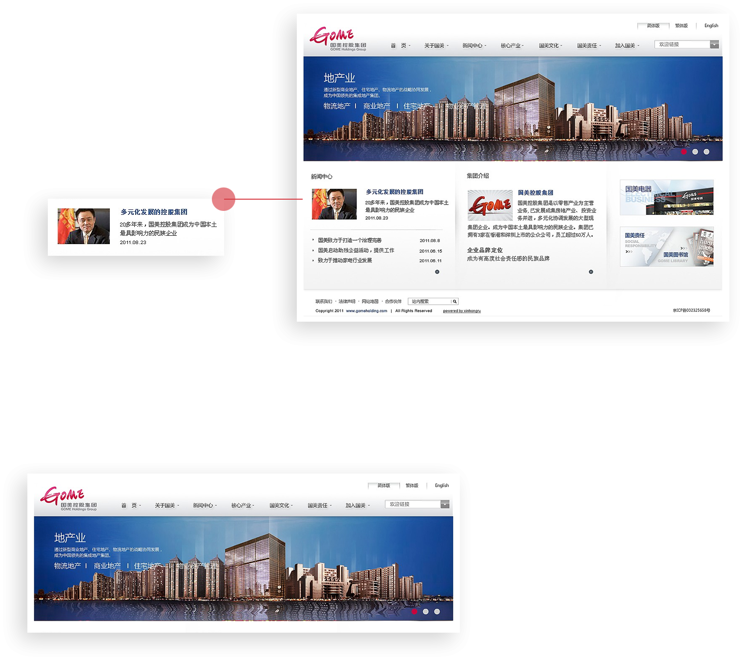 國美控股集團網站主視覺采用視頻互動技術, 有效傳達國美控股集團整體品牌形象。整站運用大量動態展示 效果,增強網站的互動體驗。