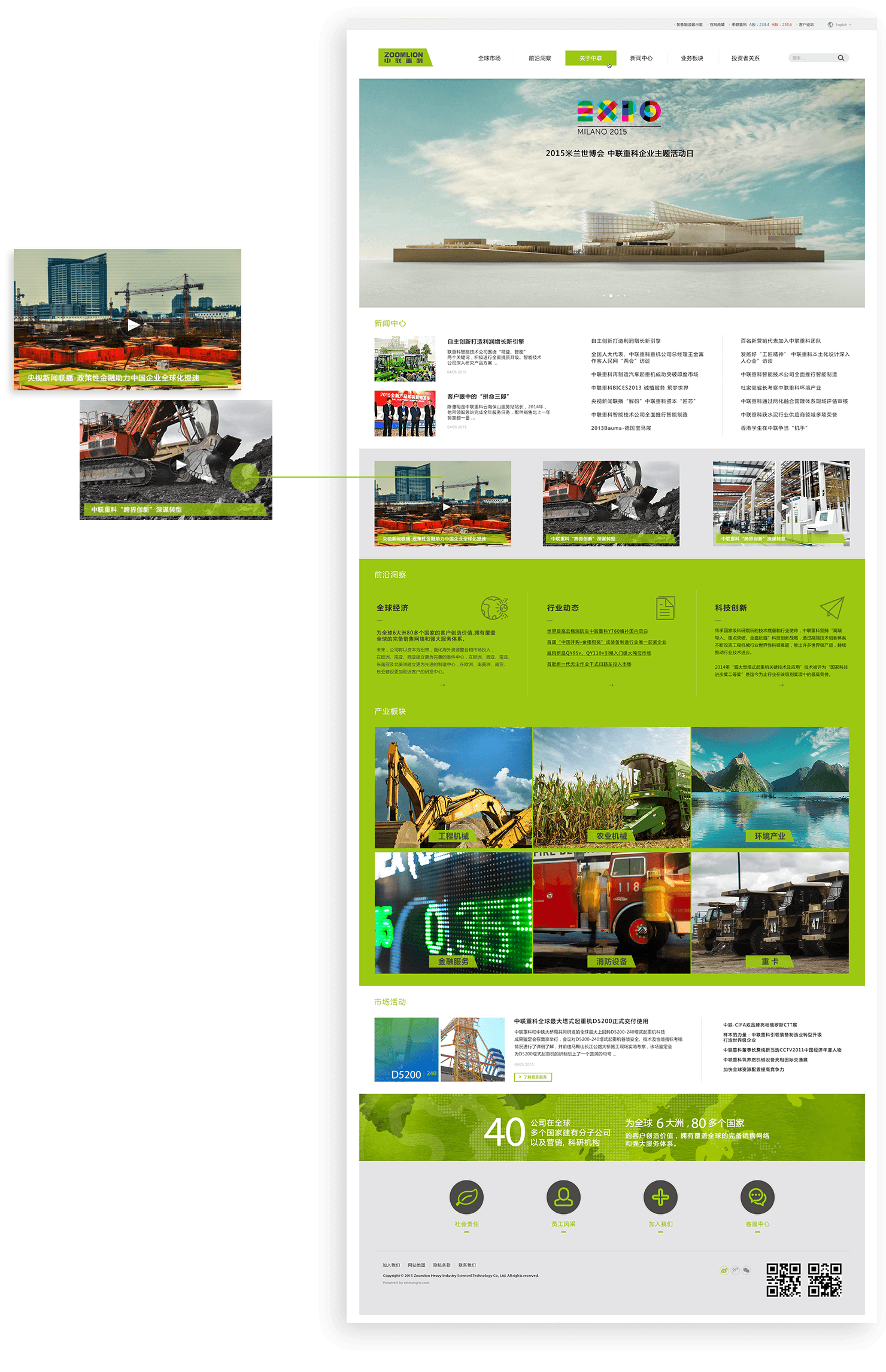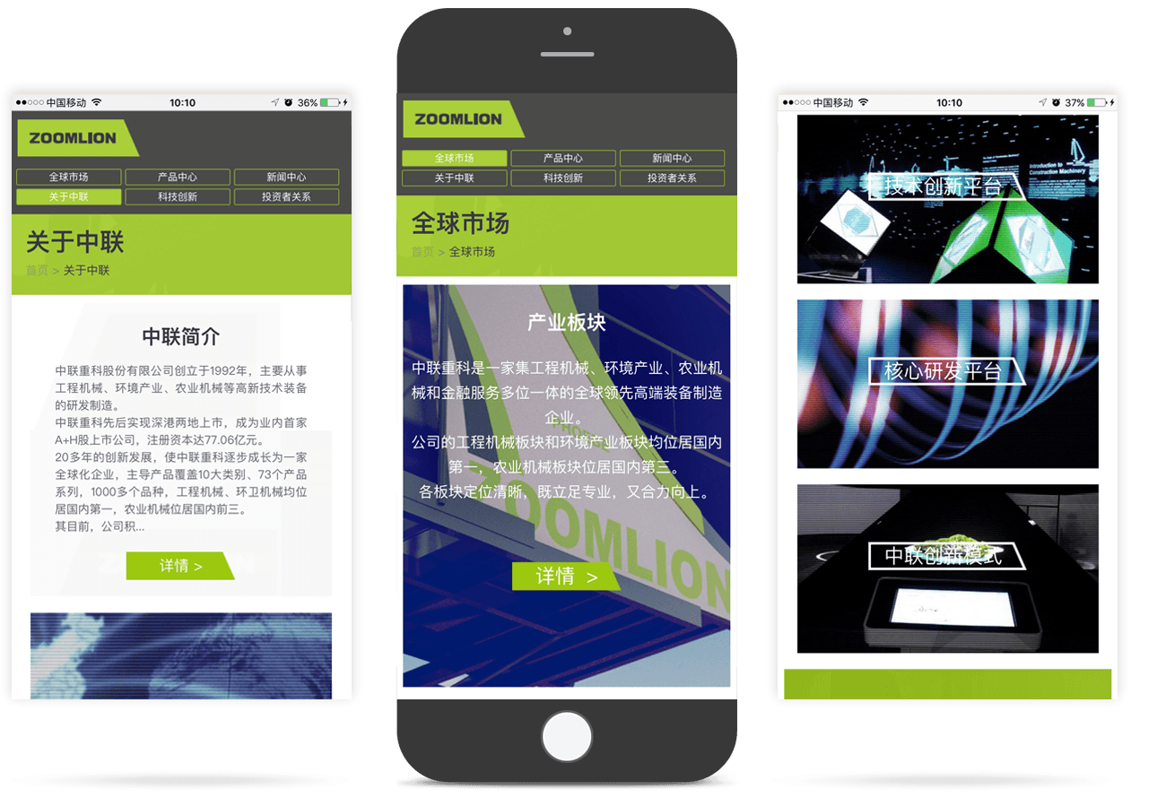 新鴻儒為中聯(lián)重科打造現(xiàn)代化、科技感的集團(tuán)官網(wǎng)——以國際流行的扁平化和色塊方格的長布局為核心,通過錯(cuò)落排版的圖片 色塊相對均勻地吸引用戶的注意力,并以扁平化的處理方式讓每個(gè)元素更加易用、易辨識(shí),突出核心內(nèi)容。