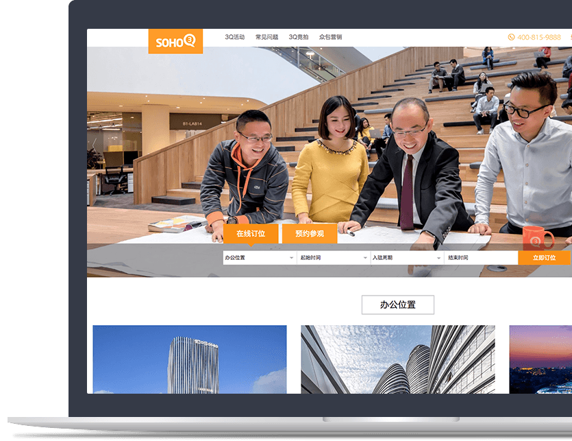 SOHO中國與新鴻儒持續合作多個項目,包括SOHO中國官網、多個項目網站群等,并以O2O電商服務平臺項目 (SOHO3Q/SOHO3Q APP)助力SOHO中國開啟互聯網轉型之路。