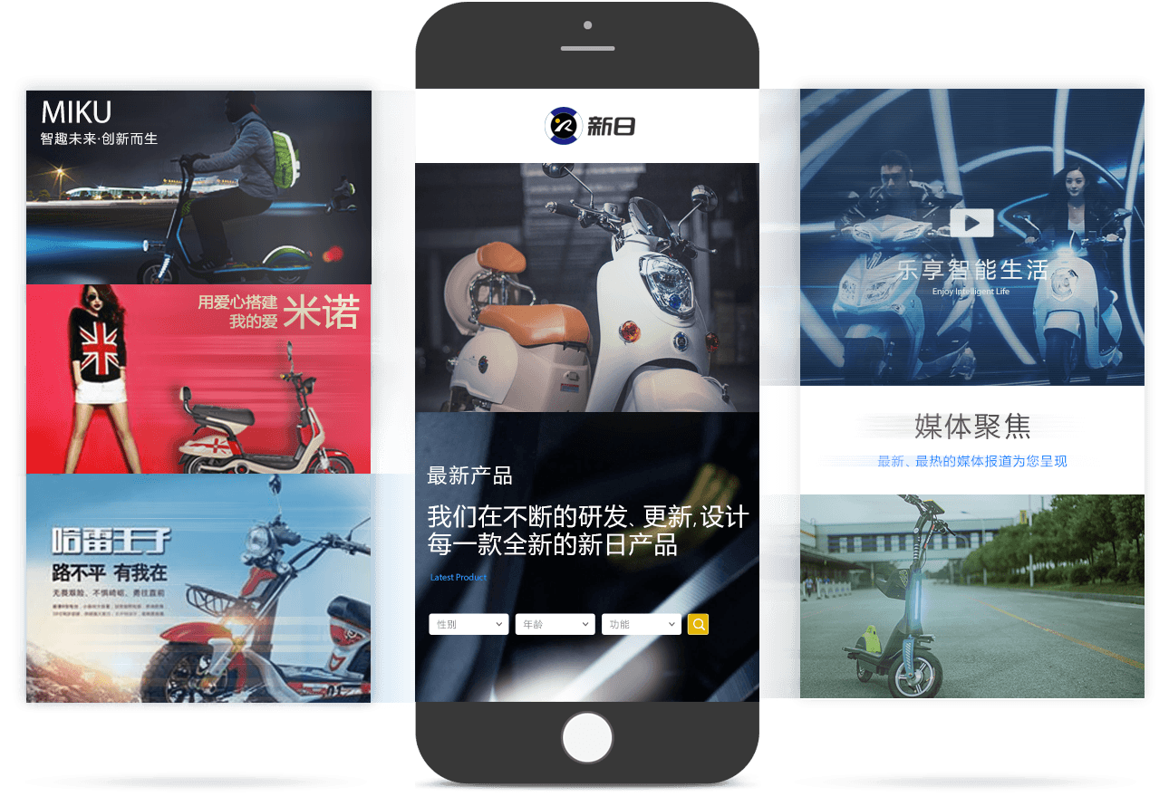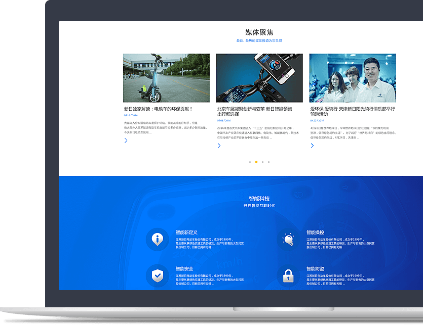 新日電動車官網(wǎng)以品牌為核心,以產(chǎn)品為基礎(chǔ),通過JS/CSS3交互技術(shù)、全屏視頻等方式, 塑造企業(yè)創(chuàng)新、智能的品牌形象。