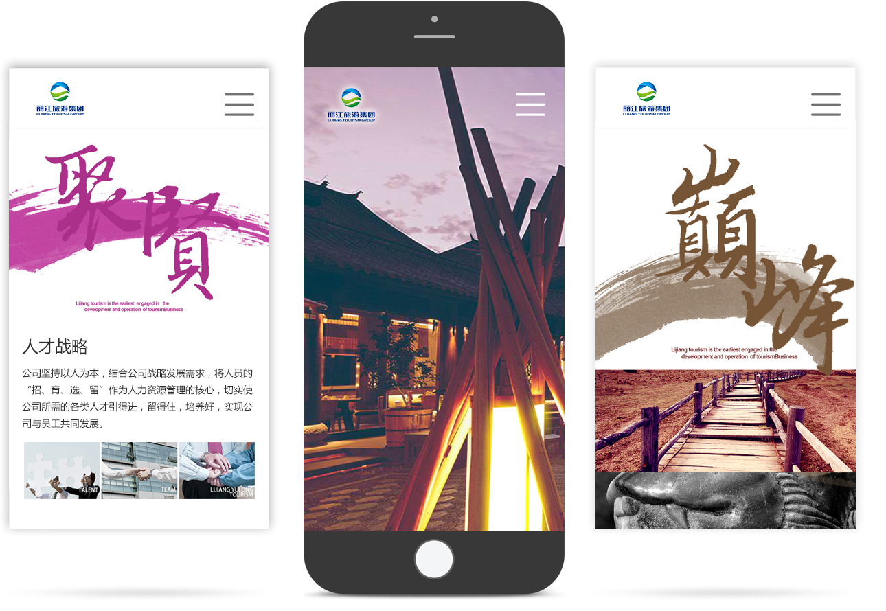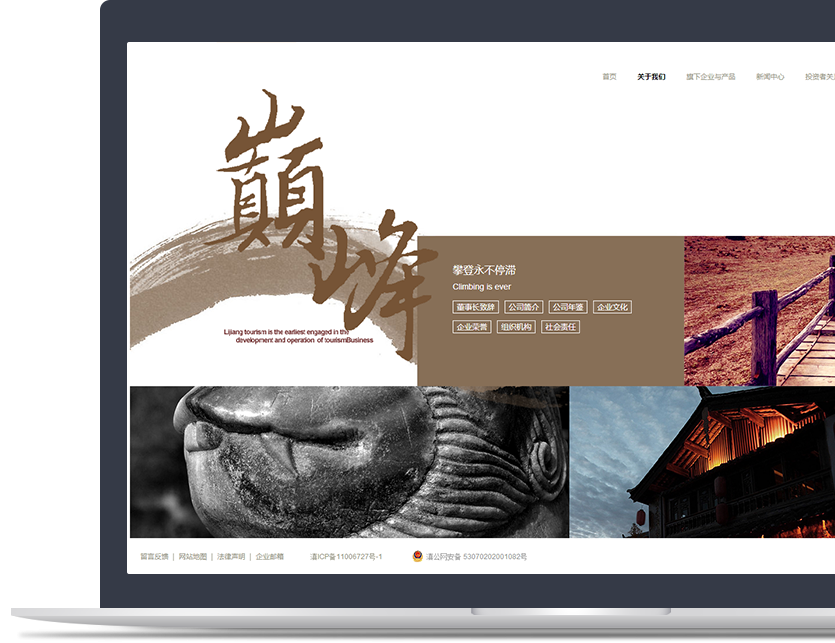 新鴻儒利用全屏背景圖的首頁設計方式,展示麗江玉龍的企業品牌形象以及麗江特色美景,將傳統與時尚結合,將古典與現代結合,成功打造了一個高品質旅游類企業官網。