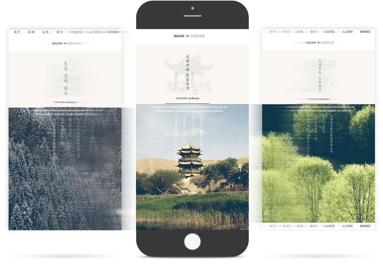 時尚帶感的動態效果、互動瀏覽體驗,不規則的圖片和導航布局, 都彰顯出了東方園林的別具一格和企業特質。