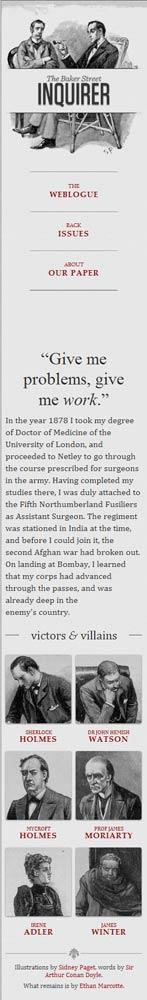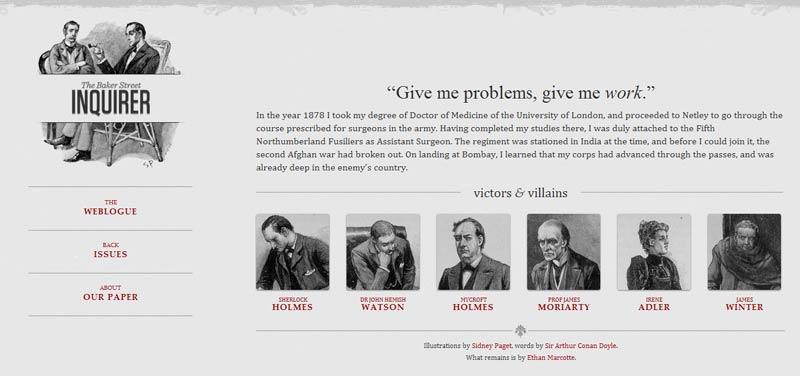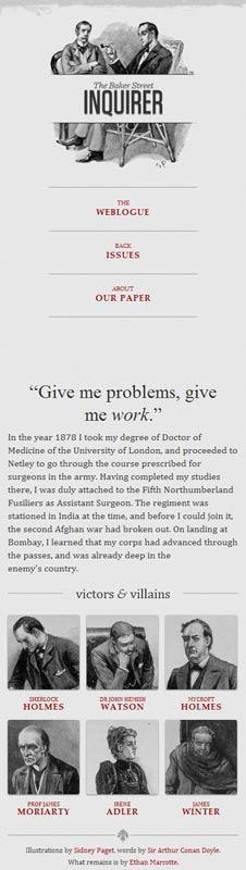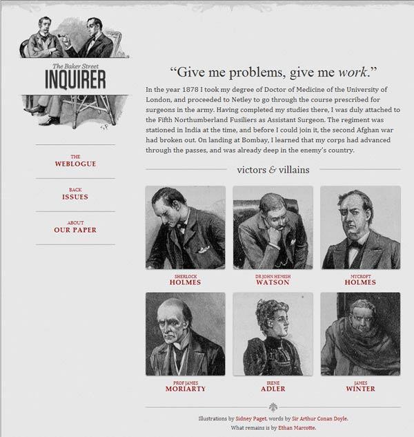 他制作了一個范例,里面是《福爾摩斯歷險記》六個主人公的頭像。如果屏幕寬度大于1300像素,則6張圖片并排在一行。