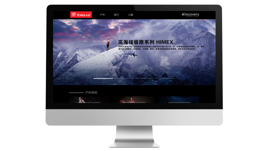 打破常規網站建設風格,以簡約設計、對比色彩運用,更符合戶外運動愛好者追求的“極致”精神。