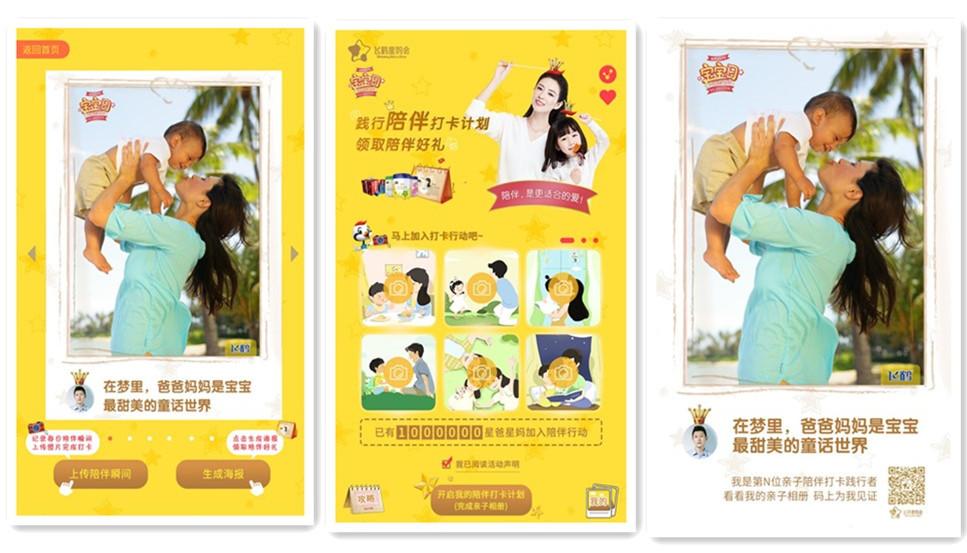 今年是飛鶴倡議“5.28中國寶寶日”的第二年,飛鶴從陪伴號召升級為陪伴指引,打造更適合的陪伴范本。通過H5互動,線上+線下有機聯動,發起了全民陪伴行動:線上陪伴習慣養成打卡。引導寶爸寶媽每天上傳自己陪伴寶寶的瞬間,即刻生成專屬海報,不僅可以在社交網絡進行分享、曬親子照,還可參加抽獎、邀請好友助力。 7天一個循環,21天養成陪伴寶寶的好習慣。