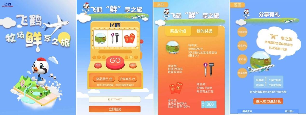 新鴻儒成立專屬項目小組,前端采用H5交互形式、后臺與內部營銷系統對接,實現線下購買、線上互動抽獎的活動形式,并且加入多種助力有獎場景,促進活動傳播,本次活動,實現了線上、線下的營銷閉環,為飛鶴品牌影響力的提升和產品銷售的增長提供了強大支撐。
