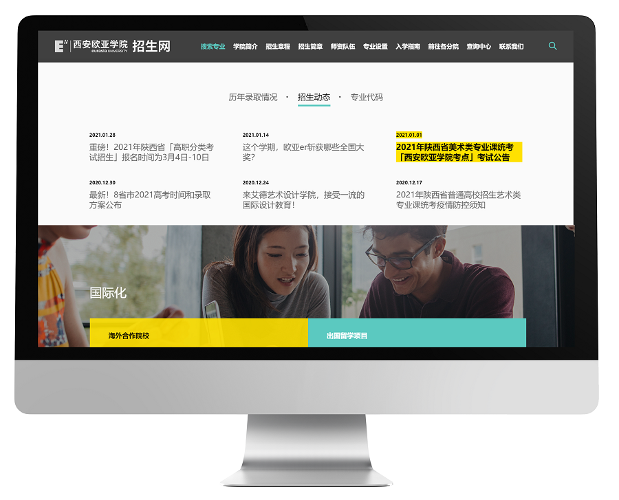 本次項(xiàng)目主要目的是通過對(duì)招生網(wǎng)站的升級(jí),面對(duì)互聯(lián)網(wǎng)環(huán)境下成長(zhǎng)的全新一代準(zhǔn)大學(xué)生進(jìn)行品牌宣傳,提升西安歐亞學(xué)院品牌形象、擴(kuò)大品牌聲量、最終提升招生工作。新鴻儒服務(wù)西安歐亞學(xué)院已有11年,為數(shù)字化校園系統(tǒng)提供迭代更新、系統(tǒng)升級(jí)、各平臺(tái)系統(tǒng)的融合擴(kuò)展工作,得到了院方各領(lǐng)導(dǎo)的高度認(rèn)可與支持。