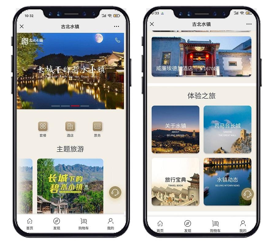 作為電商屬性的官網平臺項目,整體視覺設計方面既要充分體現古北水鎮景區整體品牌形象及景區特色,又要考慮電商網站對用戶引導性的便捷程度,在網站“好看“的同時要兼具“好用”。新鴻儒通過豐富的設計經驗,依靠對行業內項目平臺的整體分析及調研,結合當代互聯網受眾用戶的使用習慣及審美習慣,加入古北水鎮品牌特點,全新的官網形象更簡約,帶給受眾更多驚喜。