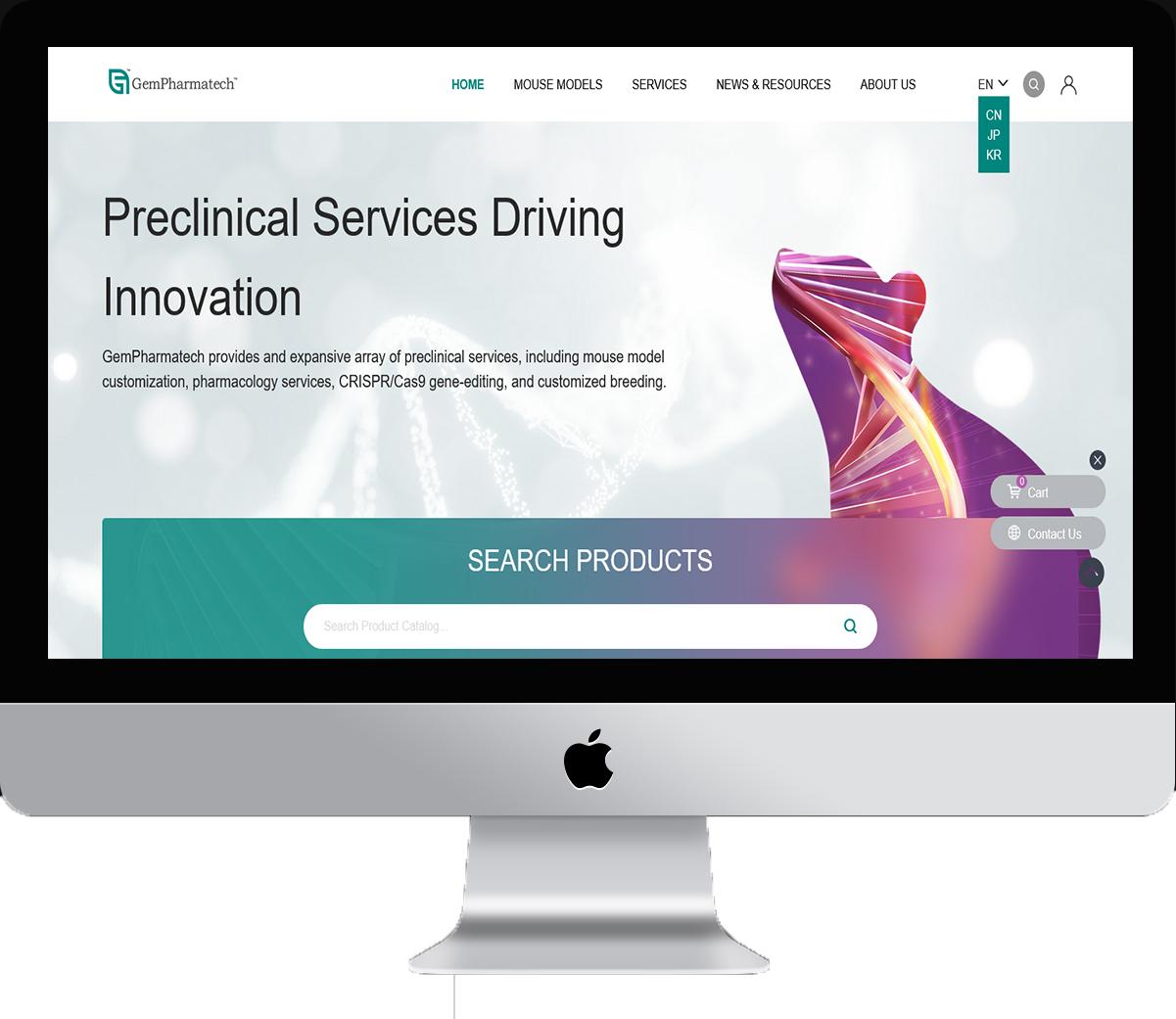網站的首頁設計,是品牌官網的核心。首頁整體布局設計充分考慮訪問者需求,重點展示SEARCH PRODUCTS、MOUSE MODELS、SERVICES,可以讓訪問者一目了然,快速獲取所需信息。其次,有效內容有助于受訪群體能感知或接受的內容,太多的文字會讓訪客閱讀不便,可以提煉成具體數字,這樣更加真實可信。針對這一點,在首頁末端中加入了江蘇集萃藥康公司的實力和業績,通過具體數字跳動的方式提煉出來,并且融合實驗操作過程視頻,更讓受眾群體能夠充分了解實力和遠大前景。