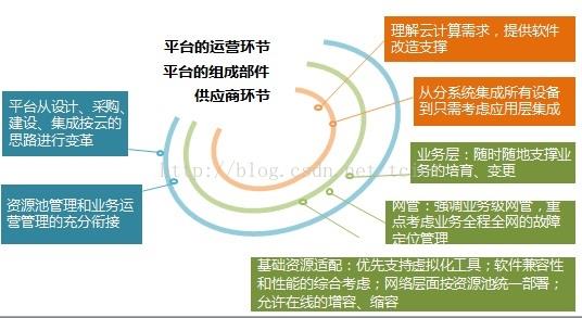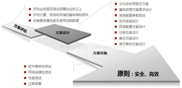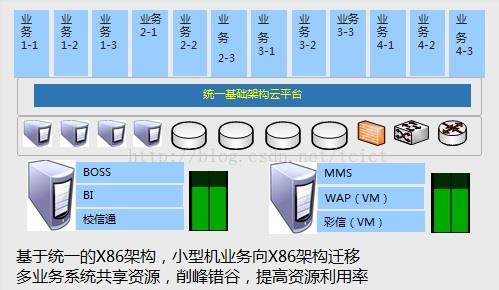 ?打破原有模式(每個平臺廠家提供軟、硬件),統一構筑硬件平臺,只向業務廠家采購軟件多業務系統共享資源,減少服務器數量,同時通過規劃,實現多平臺系統搭配后的錯峰填谷通過平臺層面的可靠性保證,降低對業務可靠性依賴,提高維護效率。???前期評估:收集業務現狀,包括計算資源、存儲資源、網絡資源、負載均衡資源、防火墻資源,操作系統、數據庫、中間件、及相關業務特點等信息,然后根據以上全部信息進行業務云化的可行性評估。?