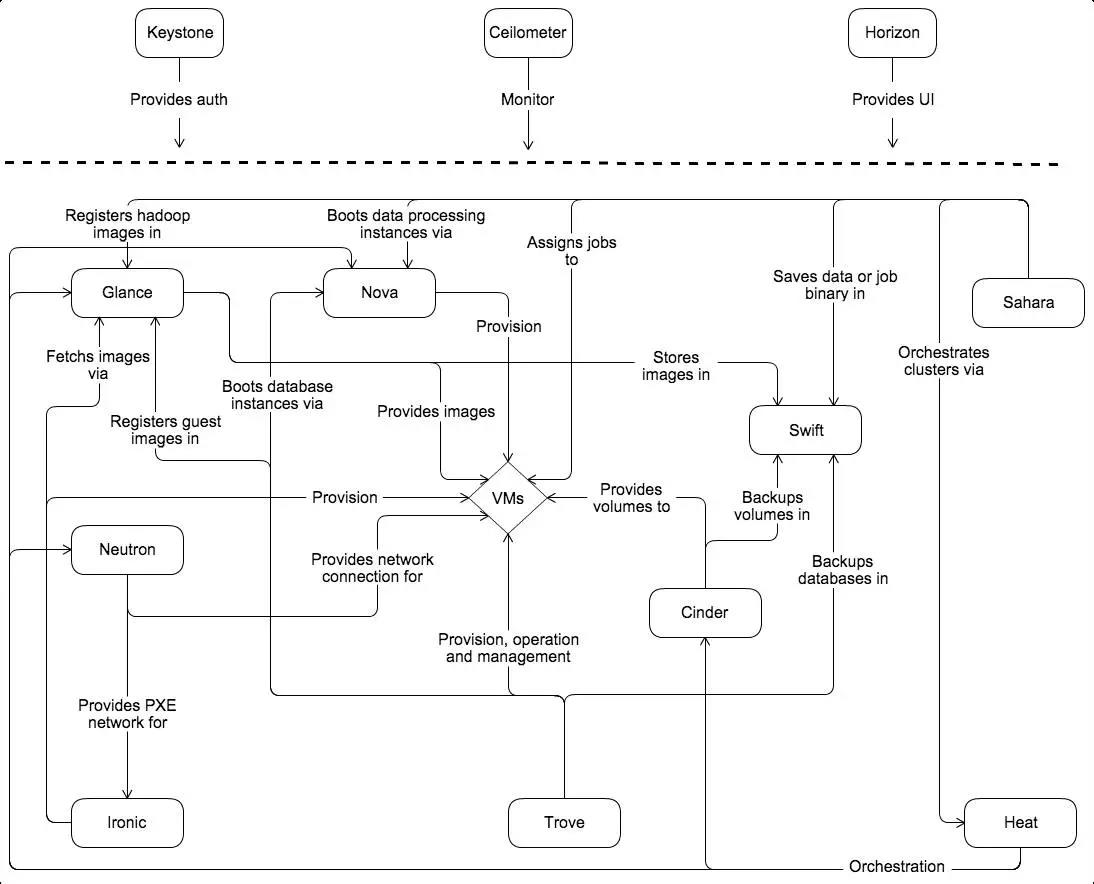 Openstack是IaaS層目前最活躍的一個(gè)開(kāi)源的云計(jì)算 IaaS 平臺(tái),即云操作系統(tǒng),類似于AWS(亞馬遜的云服務(wù)),通過(guò)各種開(kāi)源組件實(shí)現(xiàn)了不同功能,目前大部分云管理平臺(tái)均基于Openstack實(shí)現(xiàn)計(jì)算、網(wǎng)絡(luò)、存儲(chǔ)的統(tǒng)一管理,Openstack支持如下功能組件: