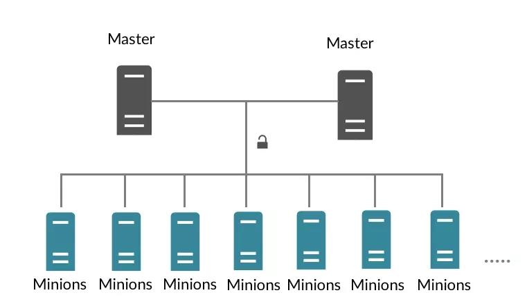 從部署結(jié)構(gòu)上看,SaltStack的在部署上可以分為master和minion兩個(gè)部分,其中master相當(dāng)于統(tǒng)領(lǐng)所有機(jī)器的總管,而minion則是部署在被管理機(jī)器上面的agent進(jìn)程,master通過(guò)網(wǎng)絡(luò)將配置管理相關(guān)的操作下發(fā)到minion,由minion在對(duì)應(yīng)機(jī)器的本地執(zhí)行。典型的部署例子如下圖所示: